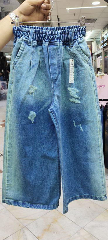 شلوار لی دخترانه جلو چین دار نیم بگ آبی رنگ